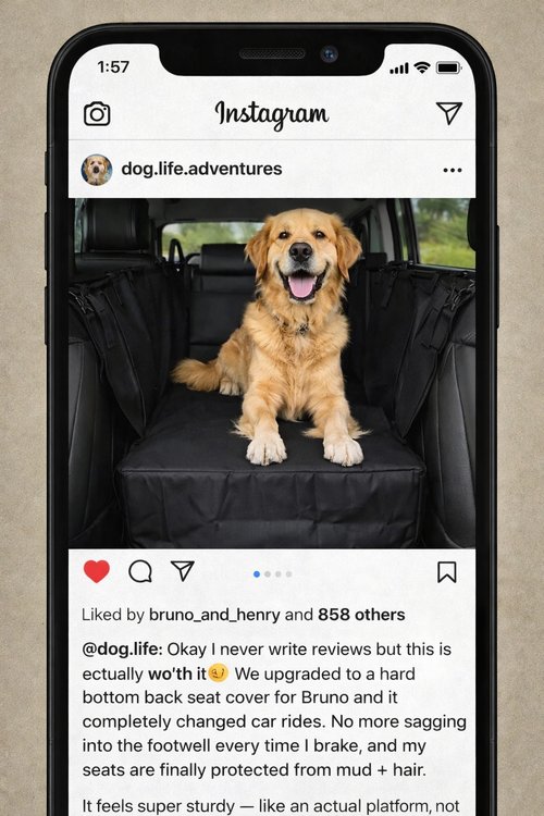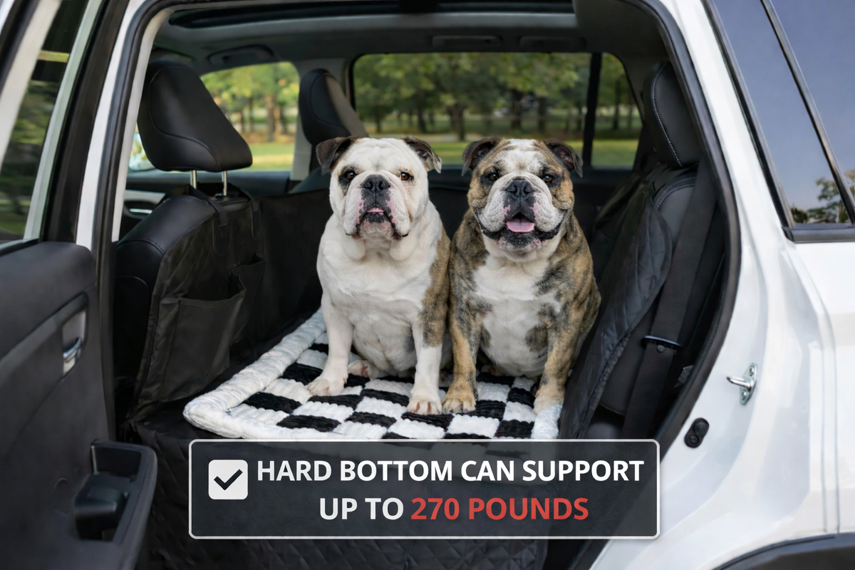 Our reinforced hard bottom transforms your backseat into a solid, non-sagging platform, ensuring maximum stability for your pet and complete protection for your car interior.